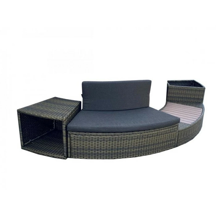Les 4 modules qui composent le pack sont tous conçus avec une armature en aluminium et une surface extérieure en osier style rotin de couleur gris anthracite.