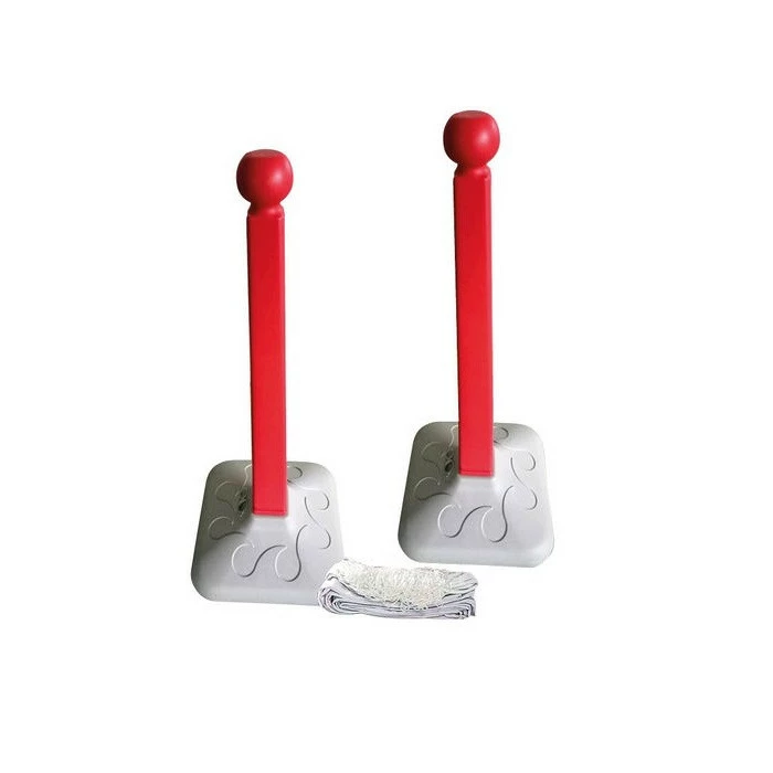 Ensemble de 2 poteaux lestés avec un filet extensible jusqu’à 7 mètres de longueur.