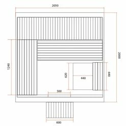 Le sauna dispose de 2 banquettes sur double niveau. Vous pouvez vous assoir en bas ou en haut.